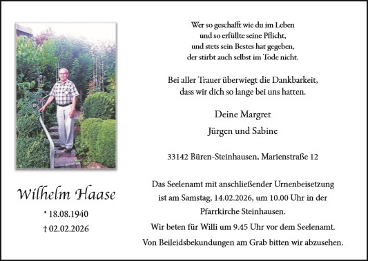 Unser Freund Willi hat sich von uns verabschiedet